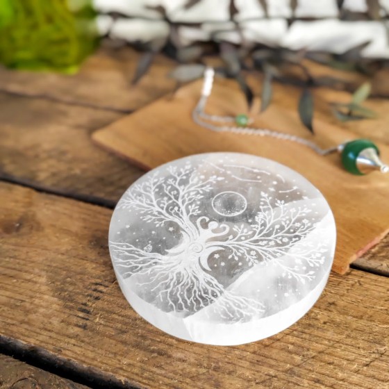 Galet Sélénite - Arbre de Vie, Gaïa & Lune - Modèle exclusif - Edition limitée