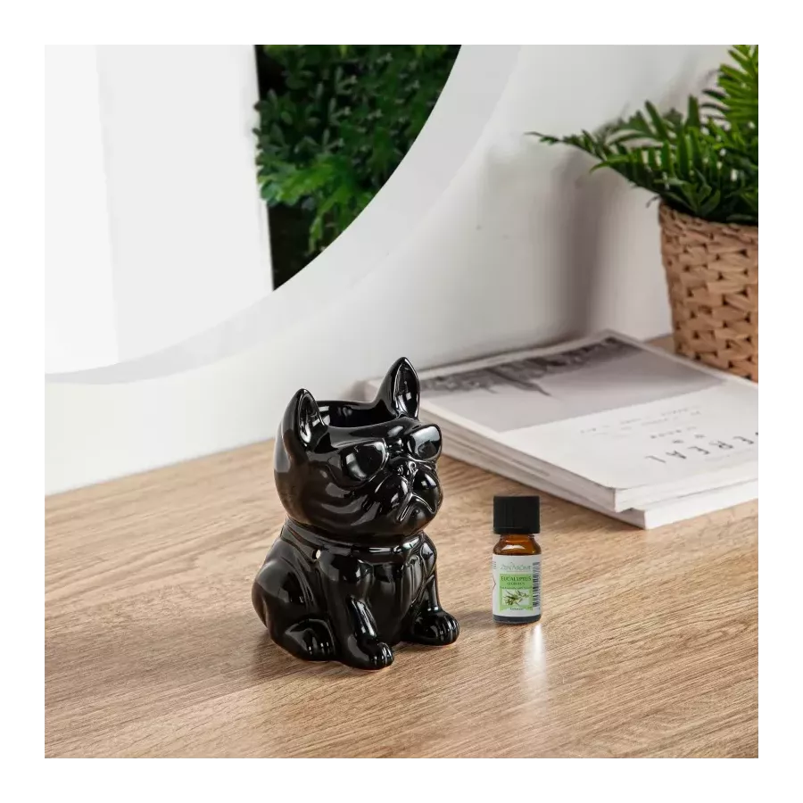 Ajoutez une touche de fantaisie à votre intérieur avec notre brûle-parfum en céramique inspiré par l'un des animaux de compagnie les plus fidèles, le chien. Revêtu d'un élégant costume noir, ce bouledogue espiègle et joueur se cache derrière ses lunettes de soleil, prêt à accueillir vos cires parfumées, senteurs, huiles essentielles et autres solutions parfumées.