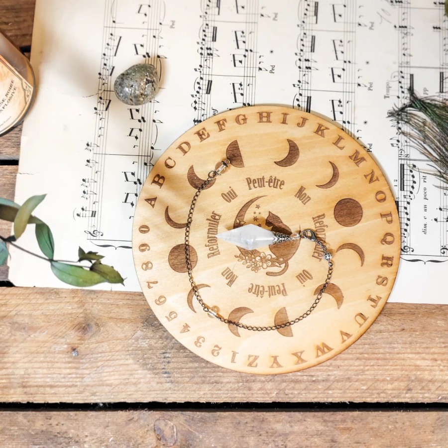 Le pendule capte et amplifie les énergies, mais sans support, il peut être difficile d’interpréter ses réponses avec précision. Ce plateau vous aide à structurer votre pratique, à obtenir des réponses plus claires et à élargir vos possibilités (réponses alphabétiques, numérologiques, etc.).